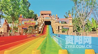 彩虹滑道:六道彩练般的竞速滑道凌空铺展,从高塔俯冲,风声呼啸中身体如离弦之箭,冲进水池时激起的水花化作甜蜜注脚,定格冒险的心跳时刻。