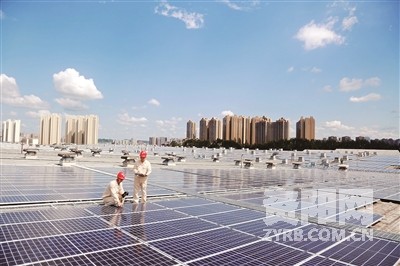 电力员工对百威光伏电站开展用能检查。王红鑫 摄