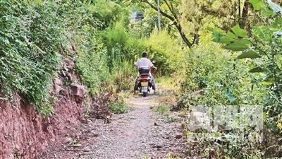 怎么绕?李琼芳迫不及待领着记者往前走,在学校前方20米处,一条小道赫然出现。“这是村上后来给我们挖的一条毛路,铺的是房屋拆迁下来的烂瓦片,里面有玻璃有钉子。”她无奈地说,“这条路这么烂,我们几家的儿女回来,车子根本进不去,只有停到外头。”
