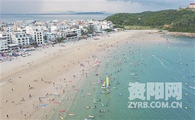 暑期,许多游客来到海南三亚,学习体验冲浪,感受与海共舞的乐趣。图为 8月9日,游客在三亚市后海村附近海域冲浪嬉水(无人机照片)。 新华社记者 郭程 摄