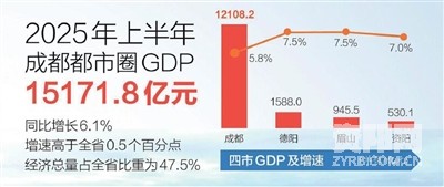 近日,成都市统计局发布数据,上半年,成都都市圈地区生产总值为15171.8亿元,同比增长6.1%,增速高于全省0.5个百分点,经济总量占全省比重为47.5%,成为驱动四川经济高质量发展的核心引擎。
