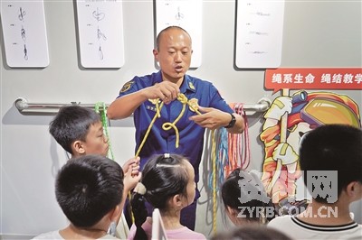 活动中,消防讲解员带领各家庭参观消防科普教育基地,分板块讲解电气火灾预防、厨房安全、消防设施使用等知识,并穿插快问快答。“油锅起火能用冷水扑灭吗?”“高楼火灾能否乘坐电梯?”等问题引发亲子讨论。此外,消防员还手把手教“八字结”“卷结”等逃生绳结打法,并组织开展穿戴灭火战斗服比赛。