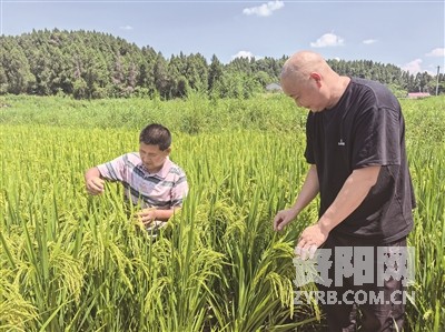 8月20日正午,暑热尚未褪去。在乐至县中天镇桂林社区的一片稻田里,阳光洒在沉甸甸金灿灿的稻穗上。午饭间隙,乐旺滋稻渔专业合作社负责人蒋刚与稻田管理员仔细查看水稻长势,并在心中盘算今年的收支账。