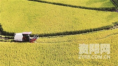 本报讯(张凤莉 姚阳 康汶艾)金秋时节,稻谷飘香。日前,在乐至县中天镇宝盖寺村连片的水稻田里,联合收割机正开足马力来回穿梭,切割、脱粒、卸粮……金黄稻谷满载而归,田间地头尽显丰收喜悦。