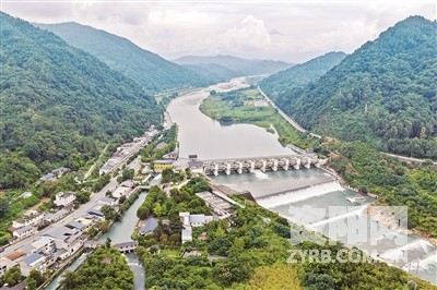 图为9月10日拍摄的四川彭州湔江堰(无人机照片)。