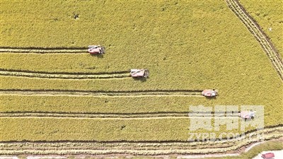 ?9月15日,雁江区保和镇马蹄湾粮经复合现代农业园区稻虾综合种养核心区,4台大型收割机正开足马力收割,一幅热火朝天的丰收画卷在眼前徐徐铺展。据了解,目前雁江区水稻收割工作正有序推进,已收割完约85%的水稻,预计今年该区水稻总产量将达到13.69万吨。
