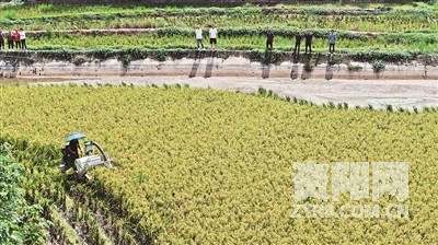 9月15日,晴空万里,雁江区小院镇桅子湾村的稻田一片金黄。李能齐头戴遮阳伞,熟练地操作着收割机从田边起步,一圈圈有序推进,饱满的稻谷尽收囊中。