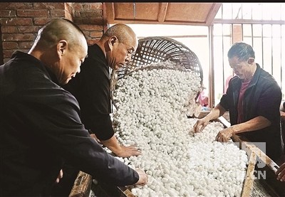 “我们严格按质定价,平均每公斤收购价在40元到50多元之间。”童家茧站验级员周万云手捏蚕茧,对光细看,“这一季要做到应收尽收,尽量把群众的蚕茧收完,让他们的辛苦得到回报。”据他介绍,该公司本季发放了700余张蚕种,预计收购蚕茧2万余公斤。