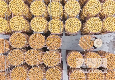 深秋时节,各地农民抢抓农时加紧收获,处处是喜人的秋日好“丰”景。图为11月1日,广西桂林市平乐县二塘镇牛角村村民在晾晒柿子(无人机照片)。 新华社发(蒋克青摄)