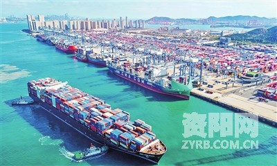 “双十一”临近,中国(山东)自由贸易试验区青岛片区跨境电商包裹量不断增加,商品高效通关后密集装卸船。自贸区挂牌六年来,通过创新“区关港+”联动机制等百余项举措,为畅通国内国际双循环提供了坚实的物流支撑。图为11月5日,一艘货轮满载货物驶出青岛自贸片区(无人机照片)。