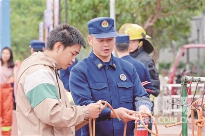 11月7日,资阳市2025年度“119”消防宣传月启动仪式在资阳口腔职业学院举行。启动仪式结束后,部分参加人员参与了消防安全体验活动,通过实际操作提高应急避险和自救互救能力。 全媒体记者 郑荔丹 摄