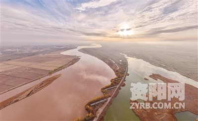 图为 11月11日拍摄的宁夏平罗天河湾国家湿地公园(右)和黄河(无人机照片)。