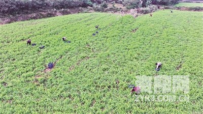 村民们在农田里采摘豌豆尖。姚阳 摄