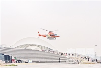 直升机从安岳石窟数字展示中心起飞。杨康忠 摄