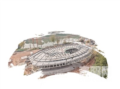——以花朵绽放为设计意象的“乐之花”,与周边公园绿地自然衔接,幕墙施工按计划稳步推进。