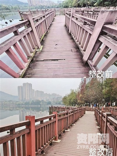 ——近日,记者在乐至南湖公园看到,此前横跨在栈道上方的黑色缆线已被升高移位,部分松动的栏杆底部也用混凝土进行了加固,记者用手轻推栏杆,发现其晃动程度明显减小,安全系数有效提升。“报道之后,我们立即对南湖公园栈道进行了两次维修,对破损的栏杆进行了加固和更换。”乐至县市政管理所所长黄小军表示,计划在春节前还将对南湖公园进行专项整治。(资观帮忙(294)|栈道破损缆线低悬 部门回应:提质改造工程正有序推进)