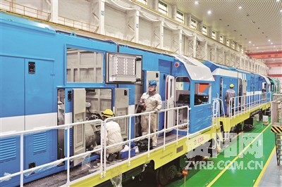 工人正在组装机车。全媒体记者 郑荔丹 摄
