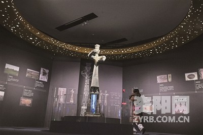 图为1月18日,观众参观展出的青铜大立人复制品。