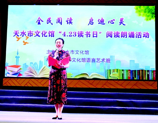 本报讯 为进一步培养全民“爱读书、善读书、读好书”的阅读习惯,培养市民对阅读和朗诵艺术的感悟能力,天水市文化馆日前在文艺厅举办“全民阅读 启迪心灵”——“4·23读书日”阅读朗诵分享会。 “我喜欢读书,读天地洪荒,五谷道场。”阅读朗诵分享会在诗词朗诵《书香中国》中开场,现场铿锵有力、深情浓厚的读书声,激发了大家参与的热情。此次参加活动的既有七八十岁的老人,还有酷爱读书的年轻人,他们声情并茂地朗诵了《春暖四月里,田间花正开》《从这里出发》《我看到的长征》《再别康桥》《诗意中国》《月满慧音山》等经典诗词及片段。活动中,分享人还逐一登台,讲述自己的读书感悟,推荐古今中外的经典名著和名家诗歌、散文,以及自己创作的诗歌、散文,并诵读其中的精华段落。 学海无涯勤可渡,书山万仞志能攀。通过本次“全民阅读 启迪心灵”阅读朗诵分享活动,让每一位参与者感受到了书籍的魅力。 (文宣)