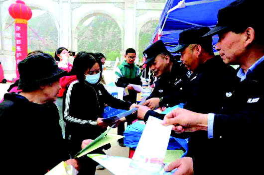 4月15日,在第九个全民国家安全教育日之际,我市各地开展全民国家安全教育日宣传活动,通过发放宣传资料、举办专题讲座等形式,进一步提高全民国家安全意识和法治意识,增强维护国家安全的使命感和责任感,促进“国家安全、人人有责”的观念深入人心。图为甘谷县举行全民国家安全教育日集中宣传活动。 新天水·天水日报通讯员 谢映波 摄