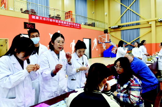 近日,由天水市中医医院体检科组织,针灸推拿科、妇科、内外科部分医护人员积极响应,与国网天水供电公司联合开展“供电公司员工健康节”义诊活动。活动现场,医护人员热情细致地为供电公司员工提供健康咨询服务,解答他们关于健康的各种疑问,普及中医健康养生方法与理念,进一步增强了员工对自身健康的关注意识,提高了他们的健康水平。 郭嘉祥 摄