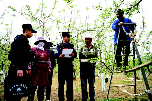 为护航辖区春耕生产顺利进行,近期,秦安县公安局充分发挥公安职能,组织民警走进辖区田间地头、农资商铺等,运用通俗易懂的语言向群众讲解预防电信网络诈骗、黄赌毒、反假币、反邪教、打击整治网络谣言等方面的法律法规和安全防范知识,进一步树立了辖区群众尊法、学法、守法、用法的观念,为辖区社会治安稳定打下了良好基础。 新天水·天水日报记者 张彬霞 摄