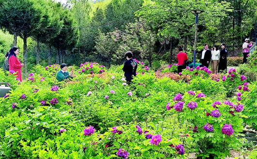 眼下,天水南山豹子沟牡丹园里的牡丹花相继盛开,吸引大量游客前来赏花游园,共赴一场别具意趣的“秦州花事”。行至园中,空气中夹杂的牡丹花香,沁人心脾。淡白、浅粉、深红……各色牡丹竞相绽放,魏紫、姚黄、赵粉、洛阳红等90多个品种的牡丹争奇斗艳。前来赏花的游人络绎不绝,大家或驻足观赏,或拍照留念,沉醉在“牡丹花开香满园”的诗情画意中。 新天水·天水日报记者刘晓亚 摄