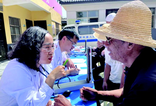 ◥5月19日是第14个“世界家庭医生日”。为进一步宣传家庭医生签约服务,推进家庭医生签约服务高质量发展,5月17日,清水县人民医院医疗服务队赴医共体成员单位黄门镇卫生院开展义诊、学术讲座、医师入户走访活动。医疗服务队成员为咨询群众免费测血压、血糖服务,并为高血压、糖尿病等慢性病患者提供个性化健康指导,同时发放健康科普资料,宣传家庭医生签约服务的新政策、新内容,鼓励群众在日常生活中做到减盐、减油、减糖,从而达到健康口腔、健康体重、健康骨骼的目的,赢得群众一致好评。 王雅娟 摄