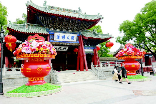 图/文 新天水·天水日报记者 孙镇 2024(甲辰)年公祭中华人文始祖伏羲大典即将于6月21日在我市举行。大典前夕的龙城天水花团锦簇、张灯结彩。秦州城区各街道、广场上由各色鲜花组成的花柱、花钵、花箱、花坛和立体景观绚丽多彩,宣传伏羲文化的灯杆标示牌庄重典雅。工作人员忙着浇花、悬挂红灯笼、清洁卫生,将城区装扮一新,迎接全球华人来这里寻根祭祖。 ▲伏羲庙前的大花坛装饰一新 ▲立体景观花坛绚丽多彩 ▲伏羲城内鲜花盛开 ▲秦州城区各街道摆满了鲜花 ◥宣传伏羲文化的灯杆标示牌庄重典雅 ▲伏羲城东牌坊前花团锦簇大型立体花坛喜迎八方来客 新天水·天水日报记者蔚军平 摄