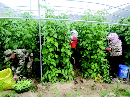 眼下,正值架豆成熟季节,武山县鸳鸯镇盘古村大棚内村民穿梭于田间地头忙着采摘架豆,百座蔬菜大棚不仅增加了村集体收入,还鼓起了农户的“钱袋子”,并为农村闲散劳动力提供了更多的就业机会。 巩顺芳 摄