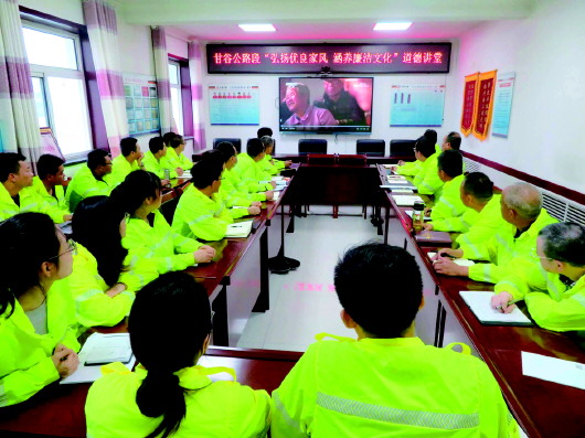 近日,甘谷公路段组织开展“弘扬优良家风,涵养廉洁文化”为主题的道德讲堂,积极传递崇德向善的正能量,营造廉洁自律的良好工作氛围。 胡文博 摄