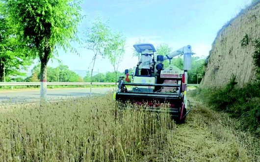 本报讯 麦垄黄金撒,熟透天地间。眼下,清水县郭川镇14500余亩冬小麦陆续成熟开镰收割,机收率达到95%,广大群众、村集体、合作社抢抓天气晴好的有利时机,加紧抢收,确保夏粮颗粒归仓,奏响夏粮“丰收曲”。 在清水县郭川镇马庙梁600亩小麦良繁基地麦收现场,3台联合收割机来回穿梭在麦田里,隆隆的机械声不绝于耳,麦穗被收割机吞进“腹”中,“吐”出黄灿灿的麦粒,装满小麦的粮袋被农民请进了农运车的“兜”里,来回穿梭运输,处处呈现出一派繁忙的景象。 “今年村集体种植小麦200余亩,都是机种机收,管理也是社会化服务,有了科技的支撑,轻松了不少,而且产量也比往年增加了不少,从收成来看,今年亩产可达300公斤。”宋川村党支部书记宋明星高兴地说。 近年来,郭川镇积极落实藏粮于地、藏粮于技战略,坚持“稳面积、提产能、守底线、促增收”总体思路,确保粮食安全。 (王清清)