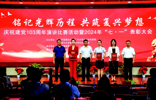 6月28日,由市委直属机关工委、市文化和旅游局、共青团天水市委、市妇女联合会主办,市博物馆承办,天水文投公司、交通银行天水分行、秦州区住房和城乡建设局、秦州区西关街道党工委联办的“铭记光辉历程 共筑复兴梦想”庆祝建党103周年演讲比赛暨“七一”表彰大会在市博物馆举行。 经过激烈角逐,最终评选出一、二、三等奖并现场进行了表彰奖励。同时,还表彰奖励了公祭伏羲大典先进个人和优秀志愿者代表。 新天水·天水日报记者 李欣桐 摄