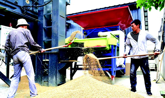 近日,在新建成的秦州区天水镇天水村粮油菜果初加工厂的加工车间,工人正在进行小麦加工作业。该加工厂规划总占地面积约2000平方米,建筑面积约1600平方米,包括新建厂房、晒场、烘干设备、分类设备、包装设备、存储设备等。项目建成后,可新增劳动就业20人,预计全年加工生产小麦1200吨、油籽550吨,根据目前市场价格核算,全年产值收入可达300万元,经济效益与社会效益十分显著。 新天水·天水日报记者 陈娟 摄