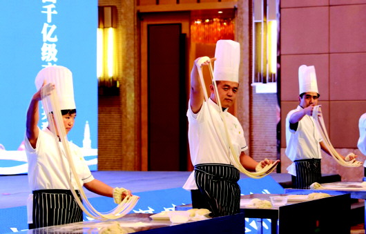 7月8日,在第三十届兰洽会上,举行了兰州牛肉拉面产业链供应链招商推介暨项目签约活动。 在当天举行的签约仪式上,张家川回族自治县共签约项目7个,签约资金1.6亿元,涵盖了“张家川·兰州牛肉拉面”品牌加盟推广、市场拓展、人才培养等上下游产业供应链,助推张家川县餐饮服务产业由大变强,让“张家川·兰州牛肉拉面”品牌更响更亮。截至目前,张家川县有餐饮业从业人员5.6万人,在全国各地开设餐饮店1.89万家。 刘继斌 摄