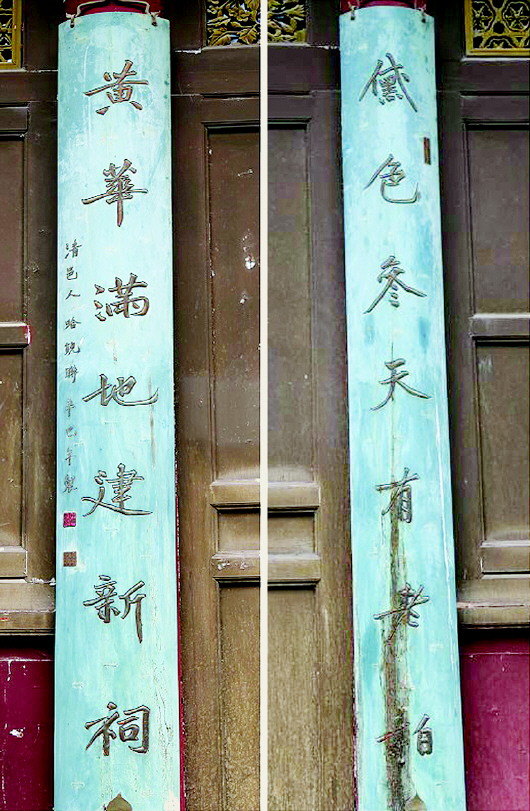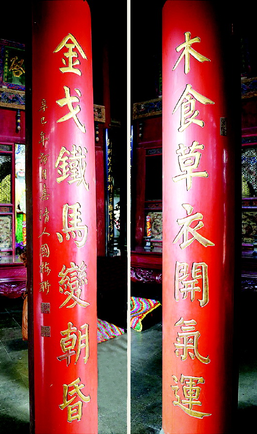 先看联句:木食草衣开气运;金戈铁马变朝昏。 “木食金戈”联辑自国栋《伏羲城》诗,悬于先天殿内。国栋,满洲镶黄旗人,乾隆七年(公元1742年)进士,乾隆二十九年(公元1764年)任秦州知州。 《伏羲城》原诗为:“万灵翊衙帝庭尊,古柏参天溜雨痕。木食草衣开气运,金戈铁马变朝昏。卦台岩下春风老,书契沙头鸟迹存。岂有缭垣抔土在,城名犹作邃初论。” “木食草衣开气运”是写伏羲的贡献。木食草衣:指伏羲所处的远古时代,人们以野果、野菜、野兽为食;以树叶、兽皮为衣。开:开启。气运:气数,命运。后世易学家在伏羲八卦中融入五行、九宫图,用生克原理来预测人事乃至国家的发展态势。此指伏羲首建政治清明、文明有序的皇权统治社会(或说文明社会发源)。“金戈铁马变朝昏”是慨叹伏羲之后历代统治政权的迅速更替演变。金戈铁马:征战之具,借代一个政权推翻另一个政权的战争。那么全联的意思是:伏羲一画开天,建立了第一个政治清明、文明有序的皇权统治社会,以后的“风流人物”这个建立政权,那个推翻政权,一个朝代接一个朝代更替,改变之快就像早晚轮回更替一样。 再看联句:黛色参天有老柏;黄华满地建新祠。 此联悬“来鹤亭”,为里人哈锐所撰。哈锐(1862年—1932年),字蜕庵,回族,甘肃天水人。光绪壬辰(公元1892年)进士,曾任四川璧山、宜宾、乐山知县,后归里创办实业。 上联:黛色参天有老柏,纯粹写景。作者首先从大的视野落笔,紧紧抓住整个伏羲庙建筑群景色的突出特点——老柏来着墨,从色和形两方面来描绘,仅用“黛”字就点染出了繁盛古柏的颜色,用“参天”二字描绘出了古柏的颀高伟岸。下联:黄华满地建新祠,主要叙事。“黄华满地”,即遍地落叶的秋季,这既是作者对“来鹤亭”建成竣工时间的交代,又是对“来鹤亭”周围环境的实写。“新祠”,指“来鹤亭”。那么,作者为何此处不言“亭”而言“祠”呢?我想除了符合音韵要求的因素之外,恐怕主要原因还是为了突出建设此亭的纪念意义,当然意义绝非“纪念白鹤飞临预吉兆”那么简单,而是为了赞颂、彰扬时任秦州知州李鋐重修伏羲庙的德政。李鋐作为贤能知州,肯定是不允许州人为其建“生祠”的,但州人假托白鹤吉兆修“亭”,无疑是为了旌表李鋐之功德。 此联对仗工整,明白易懂,以景言事,情景交融,极富有诗情画意。读联句,我们眼前仿佛展现出了一幅生动而美丽的画面:天水伏羲庙内,繁茂的古柏直插云霄。在秋风飒飒、黄花遍地的季节,一座朴素但又意义非同一般的新建筑又在伏羲庙殿侧落成竣工了! (摘自《伏羲庙匾联碑刻浅释》)
