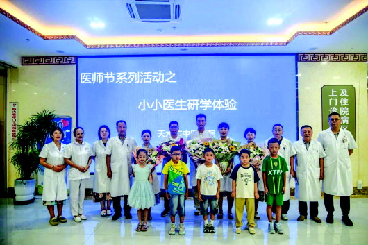 本报讯 “我长大了,要当医生!”“原来当医生这么辛苦!怪不得妈妈总是加班。”8月2日,市中医医院开展“小小医生”研学体验活动,邀请医务人员的子女组团走进爸爸妈妈的医学世界,客串“小小医生”,亲身感受医学魅力,领悟医者的责任与担当。 活动中,孩子们在医务人员的带领下参观了医院的各个科室,了解不同科室的职责和功能。在治未病科、药剂科,专家们为“小小医生”讲解了中医药小知识和香囊文化。“小小医生”们争先恐后参与体验,现场气氛十分活跃。活动最后,孩子们为父母献上了鲜花,致敬医务人员的艰辛与伟大。 此次研学体验活动,不仅让孩子们对医学世界有了一定的感性认识,也加强了他们对父母的工作的理解。今后,市中医医院将继续传承和弘扬中医药文化,让更多孩子领悟医学的博大精深与独特价值,让成为医生的梦想在更多孩子的心中生根发芽。 (郭嘉祥)