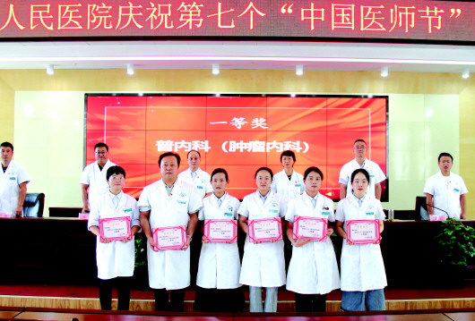 8月15日下午,市第四人民医院召开庆祝第七个“中国医师节”暨表彰大会。院领导班子成员、各临床、医技、职能科室负责人、护士长、对口帮扶专家及受表彰的医师代表参加会议。会上,对优秀医师团队、优秀医师、特殊贡献专家、对口帮扶专家、经典诊疗病例汇报比赛和心肺复苏急救技能大赛获奖的医师等进行了表彰。 冯垚 摄