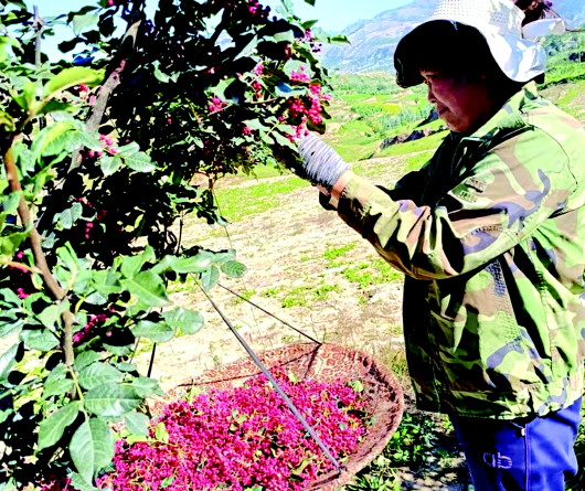 初秋时节的武山县洛门镇新观村,层层梯田上一株株花椒树错落有致,椒农们三三两两聚在一起采摘花椒,一片丰收景象。 近年来,洛门镇紧紧围绕农业产业“六抓六化六促进”总体发展思路,持续做大做强蔬菜首位产业,打造郭庄蒜苗、大南河莴笋、西梁架豆、新观花椒等一批洛门特色蔬菜品牌,发挥传统优势产业种植辐射带动作用,加快推进“一村一品”特色产业发展。同时,依托国家级洛门蔬菜批发市场和郭庄、罗屲等蔬菜产地交易市场,持续扩规模、提品质、促销售、增效益,不仅健全了蔬菜产销网络,更有效拓展了农产品的营销渠道。新天水·天水日报记者裴婷婷 张雷 摄