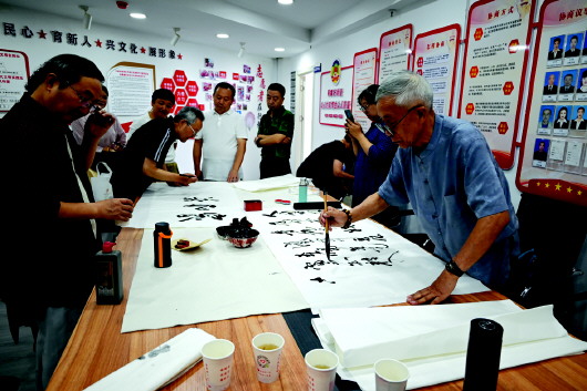 为进一步传承和弘扬中华优秀传统文化,丰富群众精神文化生活,9月2日,秦州区中城街道绿色市场社区新时代文明实践站联合甘肃省农民书画研究会天水分会,举行“书画传承进社区 翰墨丹青会邻里”活动。活动中,书画家们现场以笔会友,用墨传情,创作了一幅又一幅精美的书画作品,让社区居民近距离感受中国书画艺术的魅力,领略笔墨间蕴含的深厚文化底蕴。 新天水·天水日报记者曹润彬 摄
