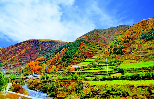 武山县是天水西大门,历史文化悠久、自然风光秀美、旅游资源丰富。具有山雄、水秀、洞天、泉汤、菜香、鱼鲜、文脉、武魂、玉润、人杰“十有”特色资源,有着“中国蔬菜之乡”“中国民间文化艺术之乡”“全国武术之乡”“陇上玉器之乡”的美誉。 秋日的渭川大地,以非凡的姿态唤醒最美的山川河流,绘就一幅又一幅的秋日七彩山水画卷。秋景中的龙台镇,就是画卷中最美的诗和远方。秋叶随风摇曳,村落掩映群林,溪水潺潺远去,炊烟袅袅升起。在马年云梯之上遥望太皇山巍峨雄壮,重峦叠嶂。由深红、金黄、橙红、翠绿交织在一起的秋日胜景,与蓝天白云相映成趣,显得壮丽无比。 层林尽染的上河峪,龙溪河静静流淌在金色画卷深处。掩映在村落间的贡生老宅墨香环绕,与河畔的闯王磨一起见证着这里的厚重历史。鱼跃山涧,山林秋色浸透,菊花漫来阵阵芬芳,这里多彩的山水诉说着最美的秋日私语。红叶如火,黄叶如梦,任谁都不舍在这妙境中离去。 (文宣)