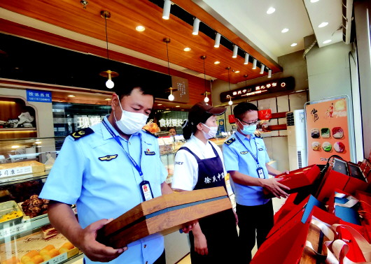 为进一步规范节令食品生产经营秩序,连日来,市市场监管局组织开展了中秋节前市场专项执法检查,确保节日期间人民群众“舌尖上的安全”。执法检查以大中型超市、螃蟹经销店、蛋糕专卖店为重点,主要检查经营者资质证照、从业人员健康证、进货查验、产品包装、明码标价等内容,重点查处过度包装、虚假宣传、商标侵权、不按规定明码标价、虚假折价等违法行为。 新天水·天水日报记者 陈娟 摄