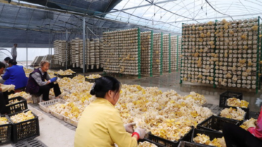 初秋时节,走进清水县陇东镇食用菌产业园,一排排整齐的榆黄菇菌棒映入眼帘,一簇簇鹅黄色的榆黄菇色泽鲜艳、清香扑鼻,工人们正在菌棚间来回忙碌着,采收、搬运、分拣、晾晒,一派繁忙景象。 “我们基地共种植榆黄菇30万棒,可以收获鲜菇30万斤左右,晾晒后干货3万斤左右,预计总产值达150万元。”正在和工人一起忙碌的产业园负责人李广葵告诉记者,今年他们是第一年种植榆黄菇,鲜菇每斤4元,干货每斤30—40元,主要销往广州、深圳等地。榆黄菇种植不仅带动了村集体经济发展,还带动本村和周边群众务工,增加了群众收入。 新天水·天水日报记者 李欣桐 摄