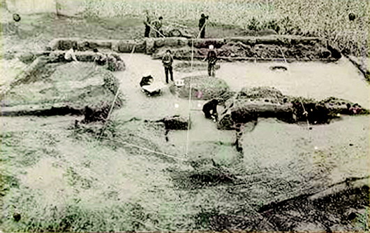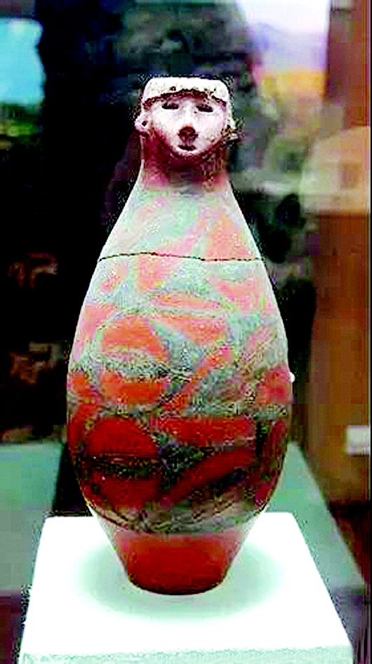 □ 王文元 先民的创意,常常让后人目瞪口呆。许多初次见到天水秦安大地湾人头形器口彩陶瓶的人,就是这种感觉。这件彩陶瓶虽然是约6000年的作品,但其依旧时尚,依旧不落伍。 前额上是整齐的刘海,头的左右、后面垂有堆凸的短发。眼、嘴和鼻孔都镂空,双耳有一小孔。面部五官位置停匀恰当。而在人的部分,微鼓的腹部用黑色线条绘三排大致相同的弧线三角形,以及斜线组成的二方连续图案,在弧线构成的杏圆形框内,绘几何图形。这便是秦安大地湾出土的庙底沟类型彩陶瓶。 这件距今约6000年的文物,高31.8厘米,口径4.5厘米,底径6.8厘米,被许多人称之为半神半人彩陶瓶。瓶为细泥红陶质地,腹部以上施陶衣。器型为两头尖的圆柱体,下腹内收。瓶器口为圆雕人头像,披发,堪称远古时期的雕塑杰作。 她或许是某位部落首领的女儿,或许是部落中的巫师,总之不是一般的人物。 秦安大地湾是中国具有代表性的史前文化遗存之一。大地湾,实际就是,大地之湾。 这个新石器时代的遗址,位于天水市秦安县东北五营镇邵店村,距秦安县城45公里,距天水市102公里。目前,确定遗址分布在清水河与阎家沟交汇处的第一、二、三级台地上。在这里,我们能追溯出华夏文明史的六个起源性问题,它们是中国北方旱作农业的起源;中国彩陶的起源;中国传统建筑和宫殿建筑的起源;中国绘画的起源;中国文字的起源;中国古城的起源。因而我们可以这样说,大地湾集中了中国史前文明的精华。 秦安大地湾遗址是1958年发现的,当时正值全国文物大普查,随即被列为省级文物保护单位。1978年开始发掘,总面积110万平方米,现揭露面积13700平方米,出土房址238座、灰坑357个,墓葬79座、窑38座、灶台106座,各种骨、石、蚌、陶器、装饰器和生活器物共计8034件。特别是房屋建筑遗址,不仅规模宏伟,而且形制复杂。在发掘中就被公布为全国重点文物保护单位。 大地湾遗址大致可分为5期文化:前仰韶文化、仰韶文化早、中、晚期和常山下层文化。其历史年代从距今8000年一直延续到距今5000年。其中距今8000年的一期文化是我国西北地区迄今为止考古发现中最早的新石器文化。 北京大学考古系教授、国家文物局专家组成员严文明认为:“(大地湾遗址)为中国文明起源的多元一体理论的提出提供了重要的证据。”大地湾一期文化出土的三足钵等200多件彩陶,是我国迄今为止发现的时间最早的一批彩陶。这批距今约8000年的紫红色彩陶,图案虽还不太完整,却将中国彩陶制造的时间上推了1000年,并以不容置疑的事实说明,西北地区是中国彩陶的起源地。 这件彩陶瓶出土于1973年。其实,据说是乡亲们平田整地时挖出来的。这种情况下出土的彩陶结局,大部分会被打碎。也有一些幸运的彩陶,被乡亲们当作器物,用来盛放一些东西,如盐,辣椒面等,人们称为“花罐罐”。后来,考古工作者发掘前,在周围村子发现了这件文物,将其征集回来。 据著名考古学家郎树德先生记述,这件精品彩陶瓶的征集过程,还有一段鲜为人知的故事: 20世纪70年代初,秦安五营邵店村农民张德禄同社员们一起搞农田基建,一镢头下去掘出个“物件”,他仔细擦掉上面的泥土,显露出了其本来的面目。看着这个“物件”既有泥捏的人头,还有好看的花纹,他实在不忍丢弃,于是拿回家去当摆设。由于十分珍爱,他又找来水泥将上腹部的裂缝粘牢,并将其摆放在家里的柜子上。直到1978年,大地湾发掘开始后,这位农民才把这件珍藏多年的“宝贝”拿来,上交给了省城来的考古人员。自此,这件后来名扬四海的稀世珍宝,才走出大山得以面世。当时,考古人员还给这位农民“奖励”了一个一块两角钱的洗脸盆。 以前,个别不知情的博物馆工作人员曾向来宾介绍:瞧,原始人的粘结技术有多高明,这件彩陶瓶粘得多好!殊不知,其中竟还有这样的故事。■ 大地湾人头形器口彩陶瓶■ 大地湾遗址发掘现场■ 复原的大地湾居室■ 大地湾先民制作彩陶的情景