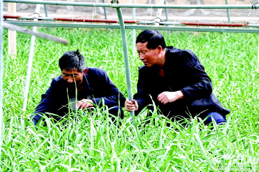 日前,武山红根蒜苗迎来又一年丰收季。在蒜苗主产区洛门大南河流域,郁郁葱葱的蒜苗长势喜人,村民们正忙着采收蒜苗。 武山蒜苗种植面积达2万亩,产量9万吨,总产值达3亿元,产品远销全国各地。武山蒜苗已成为武山县加快蔬菜产业快速发展的一张靓丽名片。 王正平 王少飞 摄