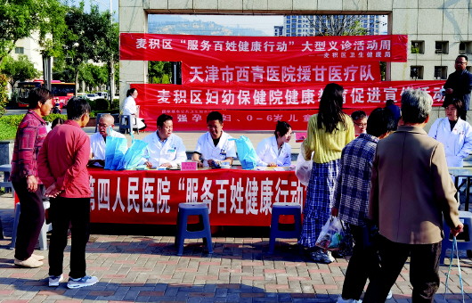 本报讯 为增强广大人民群众的健康意识,提高辖区内人民群众健康水平,近日,天水市第四人民医院选派医疗专家前往麦积区道北十字广场、石佛镇三阳新村、新阳镇王家庄等地开展服务百姓健康行动义诊活动,同时联合兰州市第一人民医院帮扶专家在该院门诊大厅举行院内义诊活动。 活动现场吸引了众多群众前来咨询就诊,医疗专家结合“十个多一点”暖心行动,针对群众个体的健康状况和用药情况进行详细解答,耐心细致了解他们的身体情况、既往病史,并结合实际情况,给出针对性的防治建议,同时提供了专业的医疗指导。 本次系列义诊活动共接诊200余人次,免费检测血压50余人次,现场发放健康宣教资料50余份。通过义诊活动,切实增强了群众的健康意识,为群众在家门口看病就医创造了便利条件。市四院将持续贯彻落实“内强素质、外树形象”百日攻坚行动,以保障人民健康为宗旨,以提升医疗质量为重点,持续开展各类公益医疗服务活动,将优质的医疗资源直接送到百姓家门口,不断提升医疗服务水平,为百姓的健康保驾护航。 (牛伟平)