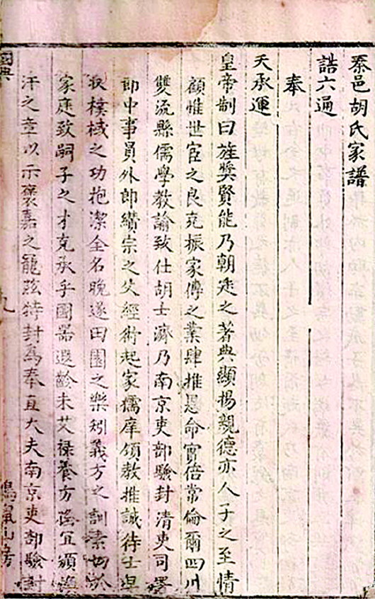 □ 安俊维 一 中国古代的城市是由街和坊组成的。街道是交通主干道,坊是居住区,可以理解为街区。 里坊制度有一个发展演变的过程。里坊,或称里、坊,是我国古代城市的基层居住单位。早在先秦时期,即已存在。《诗·郑风·将仲子》有“将仲子兮,无逾我里”之句,毛传曰“里,居也”。西汉长安城,则划分为160里,且“室居栉比,门巷修直”。此后,里坊制度日益完备,至隋唐长安城达到鼎盛。 宋徽宗时收取“侵街房廊钱”,相当于收取营业税,并且废除夜禁。至此,实行千余年的里坊制度宣告结束。从此,城区街市、楼阁遍布、官民混居,呈现出与唐长安城截然不同的城市面貌。 福建省福州市的三坊七巷就是保存比较好的传统的坊巷。在天水市秦州区,西关历史街区的巷道和古民居建筑保存得较为完好,且比较丰富。在秦安县,也有几处历史街区和巷道。本文主要想介绍一下多士坊——胡家巷。二 多士坊,也称胡家巷,位于秦安县城的核心地带,形成时间较早。在宋代置秦寨时秦安县城就有简单的道路。元至顺年间(公元1330年—公元1333年)在大城内修建兴国寺时,以今新华书店什字为中心修建南北街,多为土路,重要路段路面用毛石和沙砾砌铺。多士坊就在南街西南,应修建于此时。据秦安地方志学会顾问康熙德老人回忆,多士坊最早的建筑是元朝的文昌祠。“文昌祠”三个字是清代状元徐黼写的,“徐黼的字写得很憨,笔撇儿壮得很”。文昌祠新中国成立之初尚在,今已不存。 巷口北侧为牛家公馆,20世纪80年代,牛家公馆的一座清代建筑被整体迁建,现为秦安泰山庙的三清宫。 多士坊宽约3米,通长约350米。东端巷口毗邻兴国路。巷口对面就是学巷,沿学巷可到秦安文庙。巷口往南就是南柴市,是一处商贸集市,通南上关和南下关古街。现在的胡家巷呈“T”型,其西南巷口毗邻太白街。笔者曾询问过史地学者李雁彬,其明清时的格局是否如此?是否为通巷,而非死胡同?李雁彬明确地说:“胡家巷不是死胡同,西端通往县衙前的柳林池。” 据《秦安县志》记载,明代嘉靖年间,秦安已有多福坊、多址坊、多士坊、多庆坊、多才坊、同春坊、迥波坊、魁星坊等。从取名上可以看出,这些地名应是政府统一给定的。多士坊,顾名思义,此地应该居住了很多读书人。明代之时,巷口有一牌坊,上书“多士坊”。上款为万历乙酉年(公元1585年),左手里是“里人胡缵宗书”。胡缵宗(公元1480年—公元1560年),字孝思,又字世甫。号可泉,又别号鸟鼠山人。万历乙酉年时,胡缵宗已经去世,这方匾所采用的字是胡缵宗生前题写的。 在秦安县博物馆收藏有“多士坊”的木质牌匾,是万历丙午年(公元1606年)重修多士坊时制作的,采用的字也是胡缵宗生前题写的。这也是秦安县博物馆所保存比较早的一块木质牌匾,由于时代久远,木匾上的油漆已被风雨侵蚀,成为现在的样子。似乎已让人联想不到钟鸣鼎食、人文蔚起的往昔光辉。 至于多士坊为什么又称胡家巷,大概是因为这里是胡缵宗家族聚居的地方。由于胡缵宗在秦安县的名气很大,其家族名人辈出,所以本地的老百姓将多士坊俗称为“胡家巷”。 胡缵宗的高祖胡钺迁徙到秦安县,居住在多士坊。曾祖父是胡海。祖父胡琏,以国子监生任河北南皮县知县。父亲胡士济担任过四川双流县教谕兼署县知事,叔父胡士淇曾任四川什邡县知县。其祖、父两代皆通经。到了胡缵宗这一代,胡家已经在多士坊居住了五代人。胡缵宗官至山东、河南巡抚兼右副都御史,是位杰出的政治家、书法家、方志学者和诗人。 胡家宅第,门上的牌匾有人说是“世家”,有人说是“门伐世家”,有一坊八牌。这块牌匾新中国成立之初尚在,今已不存,具体情况待考,但都有“世家”二字,这是当之无愧的。 胡缵宗家族开枝散叶,子嗣中有一部分迁到了县城东郊的凤山村,在旗杆巷居住。而胡家巷的祖宅则一直由其后裔居住,延续至今。只可惜祖宅中明清时期的古建筑,已经圯毁不存。 ■ 清康熙《胡氏家谱》■ 清末秦安县城■ “多士坊”木质牌匾