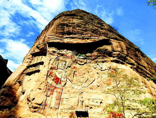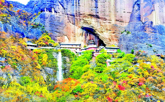 武山县钟楼山峡谷内隐藏着一处自然奇观——武山水帘洞石窟群。这个位于城东北25公里的宝地,如诗如画,自古以来就吸引着无数游客。 水帘洞石窟现有水帘洞、拉梢寺、千佛洞、显圣池四个单元,为丝绸之路东线上一处重要的石窟寺院。 “群峰叠嶂觅无路,乱石开径别有天。谷涧溪水潺潺,景色幽静宜人。”水帘洞是高约50米、深20米的天然岩洞,洞内常年细流不断,雨天洞檐飞流直下如水帘,因而得名。 水帘洞石窟群始建于北周,经五代、宋、元增建重修。石窟群共有七寺、五台、十二处人文古迹,分五组散布于方圆数公里以内,与“雄奇险秀幽旷”的自然景观融为一体,成为陇右古文化明珠和风景胜地。 水帘洞的崖面上保存着北魏、隋、唐、元各代的佛教巨幅壁画。整个洞内楼台、泉石、雕塑、画像相辉相映,大有天然布景之趣。而在拉梢寺,可以看到山上的丹霞地貌像云霞片片,连绵起伏,深深浅浅的红,红得耀人眼光,红得使人心旌摇曳。 气势雄伟、古朴壮观的拉梢寺,因有我国和亚洲之最的高40多米的摩崖高浮雕大佛造像而闻名于世,又称大佛崖,是研究我国早期石窟文化的重要资料。水帘洞石窟群将历史、文化、艺术交织在一起,为我们展示了古代人类智慧的结晶。探秘武山水帘洞,就如同踏上了一场穿越时光的神奇之旅。(摄影 / 周亚峰 文字 / 狄东阳 屈杰文)