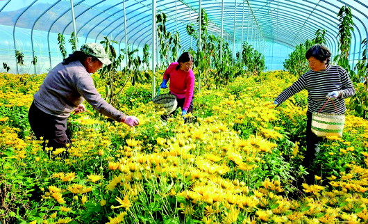 霜降时节,位于秦州区牡丹镇草川村的天水兴华荣生态农业发展有限公司种植的金丝皇菊迎来丰收。一朵朵金黄的菊花经过采摘、筛选、烘干、包装,成为深受消费者青睐的菊花茶销往全国各地。据了解,兴华荣生态农业发展有限公司在牡丹镇规模种植总面积达7000余亩,采取“企业+基地+农户”的模式,大力发展金丝皇菊、金银花、山楂种植等特色产业,带动周边村庄闲散劳动力就业,为牡丹镇乡村振兴注入了新活力。 庞贵琦 摄