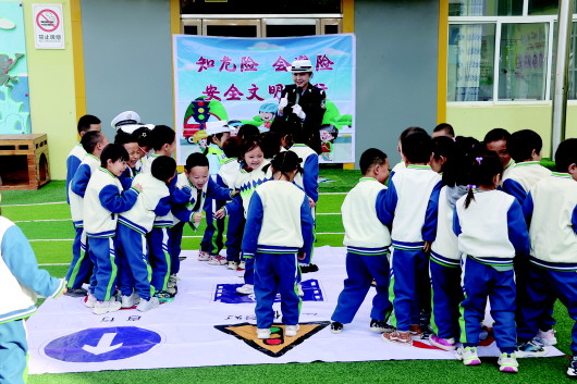 近日,张家川回族自治县公安交警走进县第二幼儿园开展了一场生动有趣的交通安全主题宣传活动。交警根据幼儿的年龄特点,通过交通安全手势操、“交通标志连连跳”、汽车盲区实景体验等方式,用通俗易懂的语言为孩子们讲解了各类交通违法行为的危害和在道路上行走、乘坐汽车时需要注意的安全事项以及常见的交通标志标线的含义,进一步强化幼儿的交通安全防范能力。 王孝军 摄